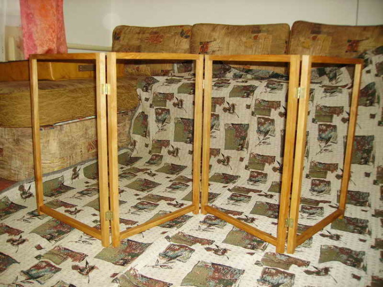- Рамки. Их понадобится несколько – минимум две, максимум с десяток. В общем, перегородка такого плана может иметь много секций, но следует понимать, что если их будет слишком много, то ширма получится неподъемной и транспортировать ее будет практически невозможно. Так что если у вас имеется необходимость в изготовлении ширмы большой длины, то следует подумать об изготовлении нескольких отдельных изделий. Но вернемся к нашим рамкам – требований к их изготовлению (если не считать эстетические) не так уж и много. В первую очередь, это жесткость конструкции – обеспечивается она надежным крепежом элементов и установкой дополнительных поперечных перемычек.