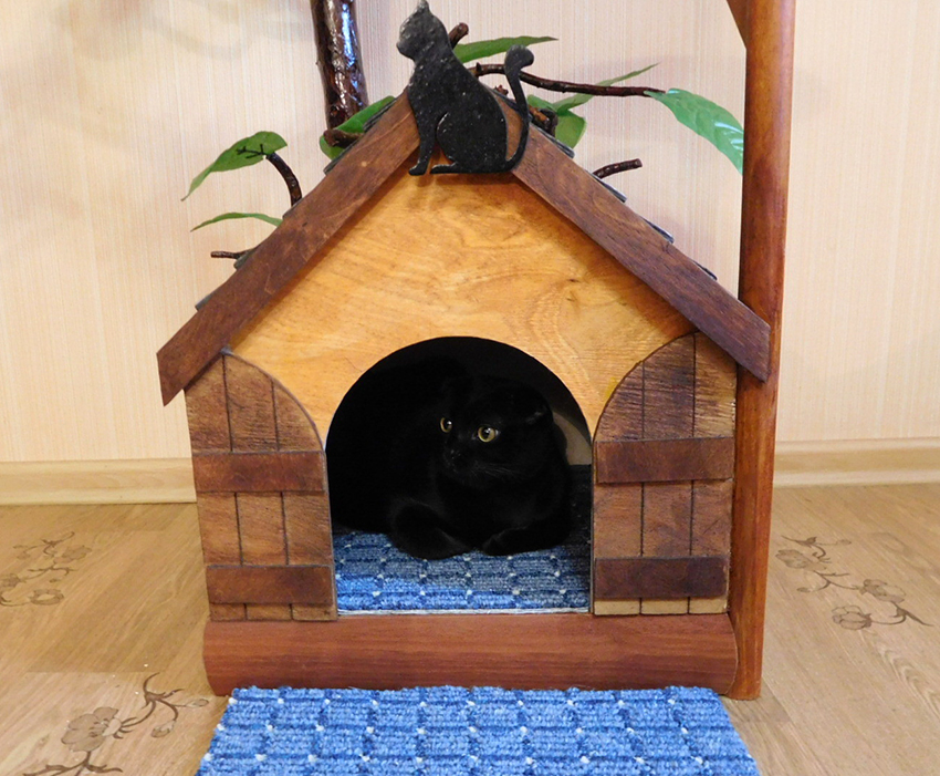 Внутрь можно постелить коту мягкую подушку. И не забывайте регулярно убирать в кошачьем убежище, чтобы там всегда было чисто.