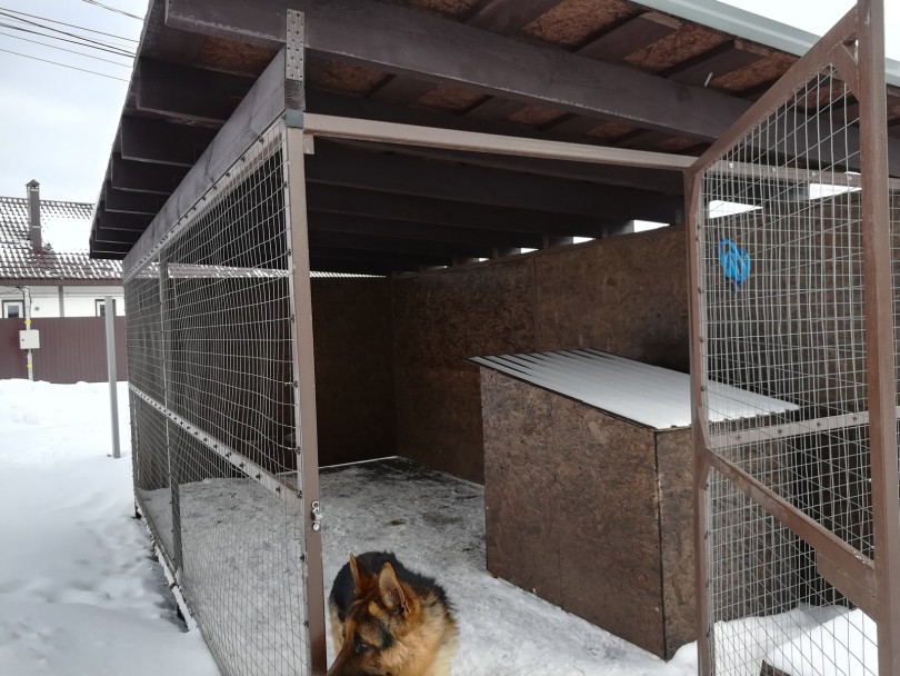 В нем ваш питомец сможет укрыться от дождя, снега и ветра, отдохнуть после «ночного дежурства» или активных игр с вашими детьми. Вольер – это личная территория собаки для сна, еды, отдыха и наблюдения. Ваш питомец с огромным удовольствием освоит его, если сможет наблюдать из него вход в дом хозяина и в целом контролировать ситуацию на всем участке.