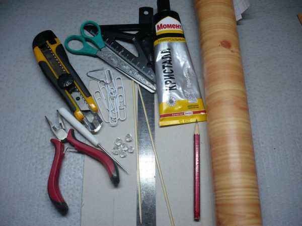 Набор материалов и инструментов для изготовления жалюзиПоследовательность изготовления жалюзи из обоев в виде гармошки