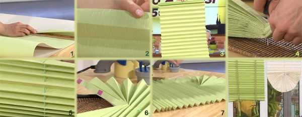Совет! Чтобы жалюзи прослужили дольше, можно верхний и нижний края согнуть, зафиксировать скотчем или клеем и уже от них начинать сборку гармошки.