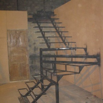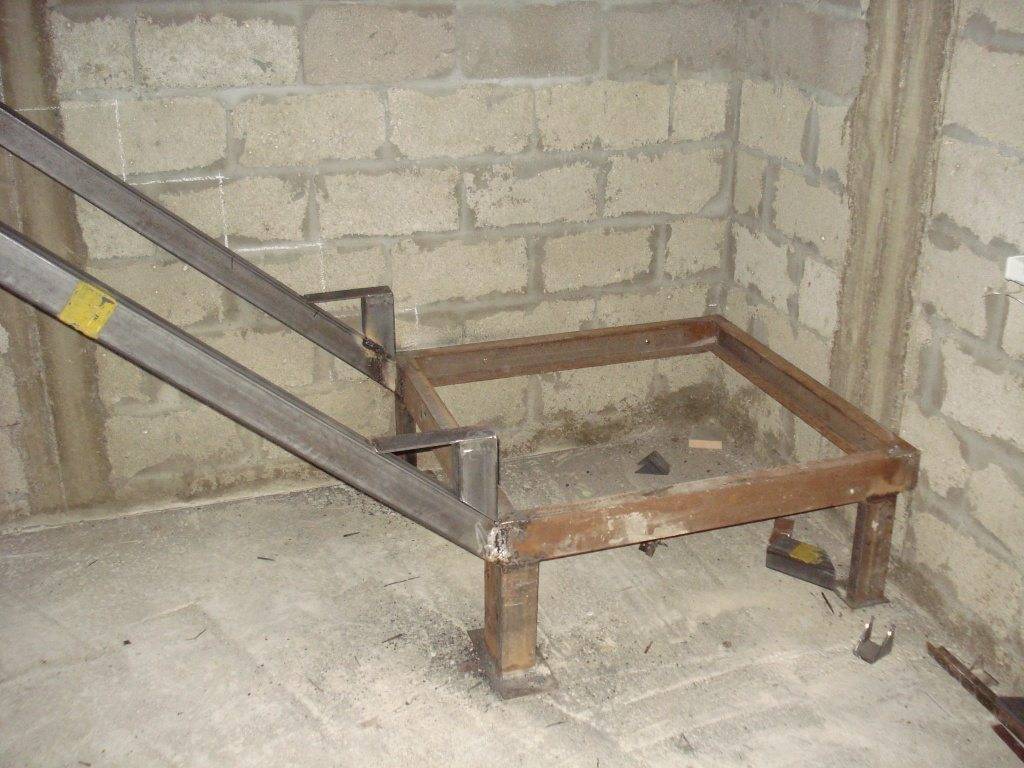 После проведения всех необходимых расчетов можно приступать к изготовлению металлического каркаса. Удобнее начинать это делать снизу вверх. Для Г-образной лестницы необходимо учесть установку опорного столба. Он необходим в качестве опоры для внешних косоуров. Без него нижний и верхний марш установить просто не получится. В зависимости от конструктивных особенностей лестницы опорных столбов может быть несколько.