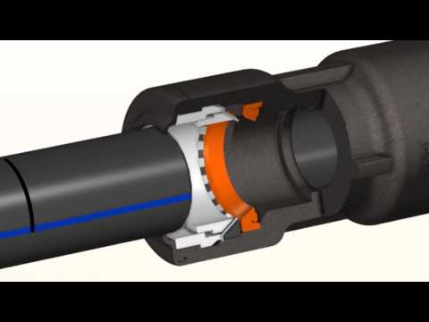 Цанговая муфтаПроизводители выпускают разные виды цанговых муфт. В начале процесса каждая из них разбирается. Потом цанга вставляется в полиэтиленовую трубу и зажимается стопорным кольцом при затягивании гайки без лишних усилий.