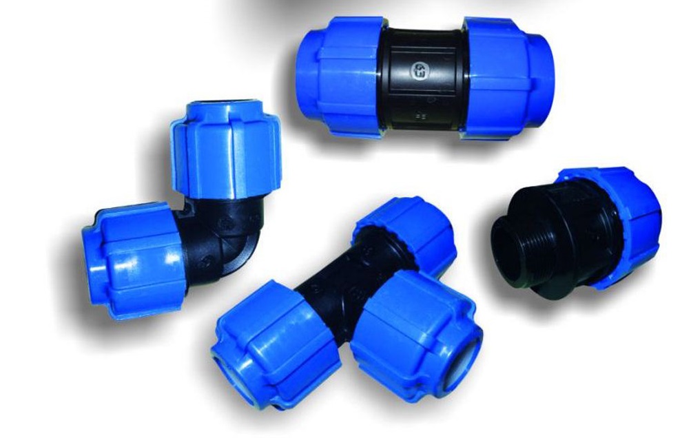 Как соединяют трубы ПНД с пластмассовыми фитингами? Устройство и принцип использования зажимов одинаков. Фитинг состоит из корпуса, внутрь которого вводят два конца заготовки. Зажимной гайкой-крышкой затягивают соединение, накручивая ее на корпус фитинга по резьбе.