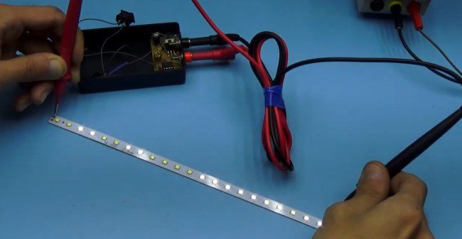 Определить неисправный светодиод, можно используя в качестве источника тока для проверки, старые зарядные устройства от мобильных телефонов. Для этого необходимо отрезать штекер подключения к телефону, и зачистить провода. Красный провод, это плюс, его нужно прижать к аноду, черный — минус, его подключают на катод. Если напряжения источника питания достаточно, то он должен загореться.