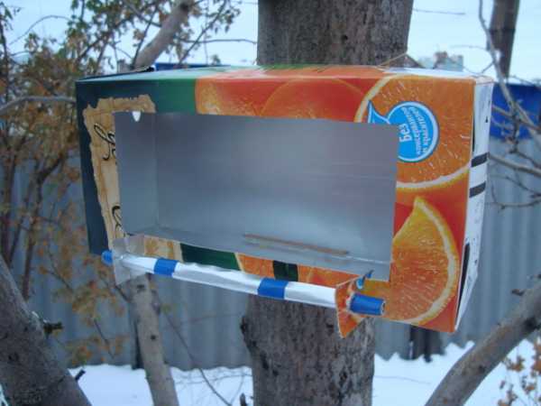 ΠΡΡ ΠΊΠΎΠ½ΡΡΡΡΠΊΡΠΈΡ ΠΏΡΠΎΡΡΠΎ ΠΈΠ·Π³ΠΎΡΠΎΠ²ΠΈΡΡ, Π½Π°ΠΏΡΠΈΠΌΠ΅Ρ, ΠΈΠ· ΠΊΠ°ΡΡΠΎΠ½Π½ΠΎΠΉ ΡΠΏΠ°ΠΊΠΎΠ²ΠΊΠΈ ΠΈΠ·-ΠΏΠΎΠ΄ ΠΎΠ±ΡΠ²ΠΈ. ΠΡΠΆΠ½ΠΎ Π½Π° Π½ΠΈΠΆΠ½Π΅ΠΉ ΡΠ°ΡΡΠΈ ΠΊΠΎΡΠΎΠ±ΠΊΠΈ ΡΠ΄Π΅Π»Π°ΡΡ ΡΠ΅ΡΡΠ΅ΠΆ ΠΎΡΠ²Π΅ΡΡΡΠΈΠΉ Π΄Π»Ρ ΠΏΡΠΈΡ, Π²ΡΡΠ΅Π·Π°ΡΡ ΠΈΡ , Π° Π·Π°ΡΠ΅ΠΌ Π·Π°ΠΊΡΠ΅ΠΏΠΈΡΡ Π²Π΅ΡΡ Π½ΡΡ ΠΊΡΡΡΠΊΡ. ΠΠΎΠ΄Π²Π΅ΡΠΈΠ²Π°ΡΡ ΡΠ°ΠΊΡΡ ΠΊΠΎΠ½ΡΡΡΡΠΊΡΠΈΡ Π»ΡΡΡΠ΅ ΠΏΠΎΠ΄ Π½Π°Π²Π΅ΡΠΎΠΌ, ΡΡΠΎΠ±Ρ ΠΎΡΠ°Π΄ΠΊΠΈ Π½Π΅ ΠΏΡΠΈΠ²Π΅Π»ΠΈ Π΅Π΅ Π±ΡΡΡΡΠΎ Π² Π½Π΅Π³ΠΎΠ΄Π½ΠΎΡΡΡ. ΠΠΎΠ»Π΅Π΅ Π΄ΠΎΠ»Π³ΠΎΠ²Π΅ΡΠ½ΠΎΠΉ Π±ΡΠ΄Π΅Ρ ΠΊΠΎΡΠΌΡΡΠΊΠ° ΠΈΠ· ΠΊΠΎΡΠΎΠ±ΠΊΠΈ ΡΠΈΠΏΠ° ΡΠ΅ΡΡΠ°ΠΏΠ°ΠΊ β ΠΎΠ½Π° Π½Π΅ Π±ΠΎΠΈΡΡΡ Π²Π»Π°Π³ΠΈ. Π‘ΠΏΠΎΡΠΎΠ± Π΅Π΅ ΠΈΠ·Π³ΠΎΡΠΎΠ²Π»Π΅Π½ΠΈΡ ΠΎΡΠ΅Π½Ρ ΠΏΠΎΡ ΠΎΠΆ Π½Π° ΡΡ Π΅ΠΌΡ, ΠΏΠΎ ΠΊΠΎΡΠΎΡΠΎΠΉ Π΄Π΅Π»Π°ΡΡ ΠΈΠ·Π΄Π΅Π»ΠΈΠ΅ ΠΈΠ· ΠΏΠ»Π°ΡΡΠΈΠΊΠΎΠ²ΠΎΠΉ Π±ΡΡΡΠ»ΠΊΠΈ: