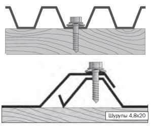 - на 1 кв. м. желательно пользоваться не меньше 8 саморезами, специально применяемых для кровельных листов, но допускается увеличивать количество данных крепежных элементов;