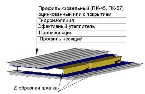 Если по каким-то причинам крышу нужно будет перекрыть с помощью обычных профлистов, понадобится сделать укладку нескольких слоев из разных материалов, которые понадобятся для теплоизоляции.