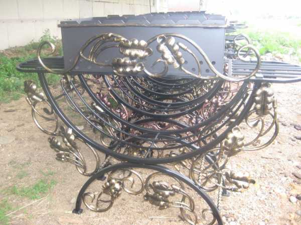 В специализированных магазинах мангалы бывают обычно стандартных размеров и формы. Если же душа желает чего-то нестандартного, удивительного, можно заказать кованый мангал у кузнеца. Такой, как этот, к примеру, безусловно, произведение искусства – авторский мангал из чугуна, изящный, оригинальный, красивый. Все гости будут удивлены и восхищены, друзья позавидуют.Но лёгкими кованые вещи не бывают, подходит эта красивая штуковина скорее для дачи, чтобы использовать её как стационарный мангал. Не таскать же такую тяжесть за собой сначала на природу, а потом обратно.