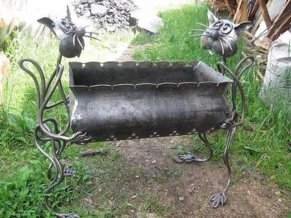 Но зато вот такой креативный мангал не очень тяжелый. Идет сразу в комплекте с помощниками, и подержат, и отнесут куда надо. Хотя для котов это и не привычная работа, но по фото видно, что справляются.