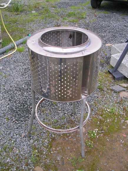А в барабане от машинки автомата даже отверстий делать не надо, уже все готово. Сверху еще решеточку от холодильника и пользуйся на здоровье. Конечно, можно и усовершенствовать, и это далеко не все варианты