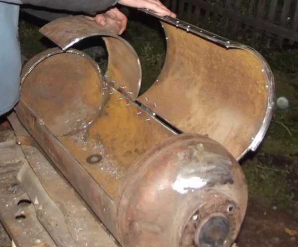 — металлический лист толщиной 2 ÷ 3 мм, старый газовый баллон или металлическая бочка;