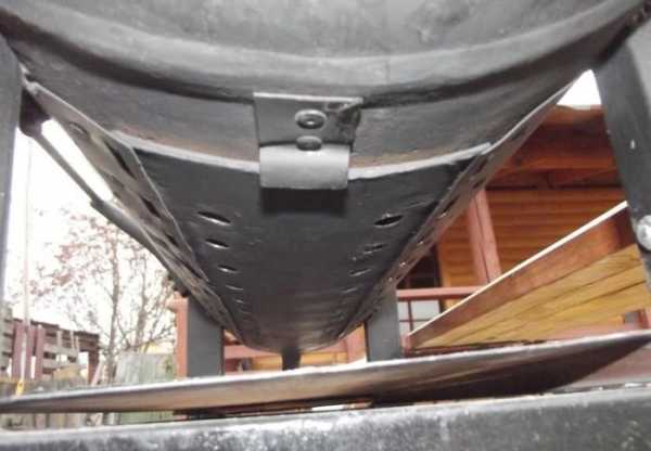Человек имел возможность воспользоваться сварочным аппаратом, подходящие листы железа тоже нашлись. В нижней части просверливаются отверстия для тяги. Заметная экономия по сравнению с покупными мангалами.