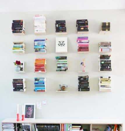 Зачем прятать книги в шкаф, если ими можно украсить стены? Тем более, современные книги очень яркие и красочные. Расположите их вдоль стены или поставьте на «невидимые» полки, благодаря которым создается эффект летящих в воздухе книг. Поверьте, интерьер будет выглядеть необычно и очень красиво.