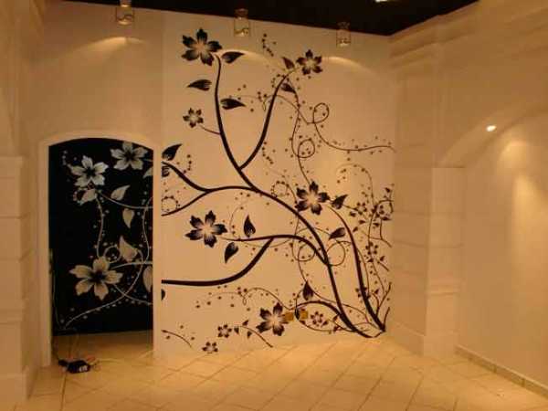 Покрыть родные стены живописной росписью можно и самостоятельно, правда, в том случае, если вы умеете рисовать. Предварительно покрыв воображаемый холст шпаклевкой и грунтом, начинайте творить, воссоздавая картину или сюжет акриловыми красками. Чтобы не испортить интерьер непрофессиональной «мазней», перед тем как украсить стену в комнате шедевром изобразительного искусства, набросайте эскиз будущего рисунка, который не позволит вам сбиться с художественного пути.
