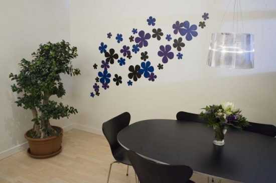 Украсить стены можно специальными стикерами-наклейками, которые сейчас очень популярны. Особенно выигрышно будет смотреться такой декор в детской комнате. Наклейки легко снимаются с любой поверхности, так что, если вдруг надоест стена в стикерах, ее всегда можно украсить по-другому. Повесьте необычные оригинальные изображения, например, с деревьями, животными и т.д.
