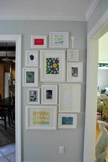 Вместе с тем, создав композицию из картинок или фотографий в рамочках, время от времени можно заменять изображения на новый комплект, выполненный в других тонах – это внесет нотку разнообразия и освежит интерьер.