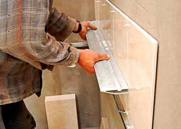 — правило, расположенное таким образом, чтобы его плоская торцевая сторона «смотрела» вверх (это посодействует удобному расположению на нём нижних торцевых краев плитки).