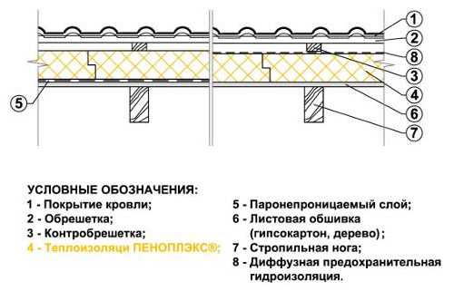 На этапе строительства весьма целесообразно выбирать такое расстояние между стропилами, которое соответствует стандартной ширине плит предпочитаемого утеплителя.