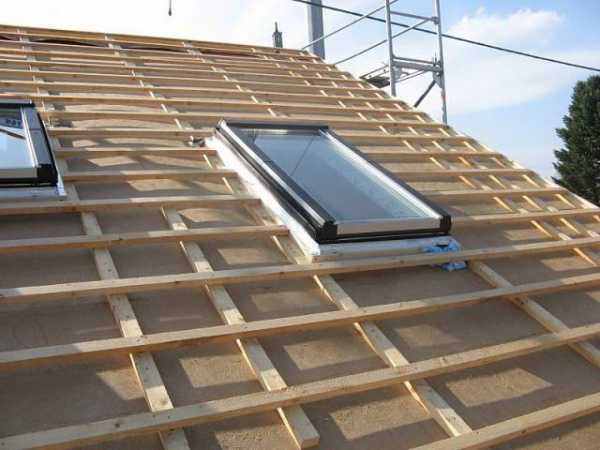 - Далее необходимо собрать и зафиксировать обрешетку для крепления обшивки. Материалом для нее (обрешетки) обычно служат рейки сечением 20х50 мм либо третьесортная доска с такой же толщиной. Шаг между прогонами будет зависеть от размеров элементов обшивки. Обрешетку нужно прикрутить к стропилам саморезами. Обрешетку можно монтировать одновременно с укладкой пароизоляции. Тогда пленку не придется крепить отдельно — она будет удерживаться рейками.