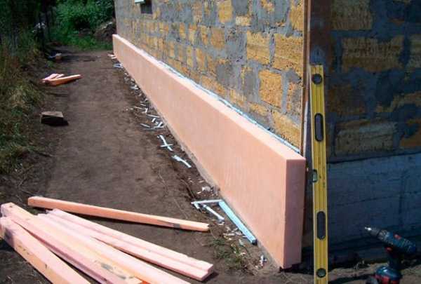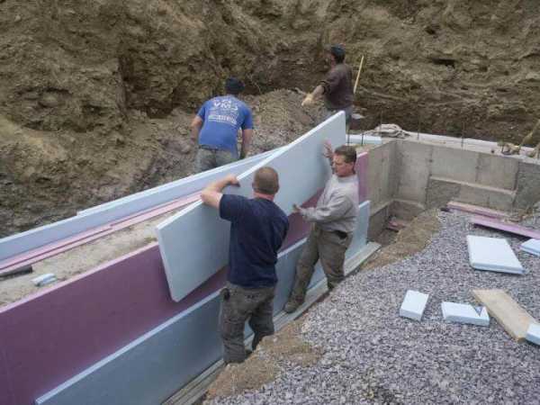 В таких случаях фундамент обкапывают с двух сторон, после чего укладывая утеплительные материалы.