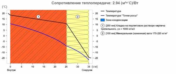 Недостающее сопротивление передаче энергии равно 3,5 – 0,45=3,05 м2С/Вт. Его нужно дополнить с помощью утеплителя.