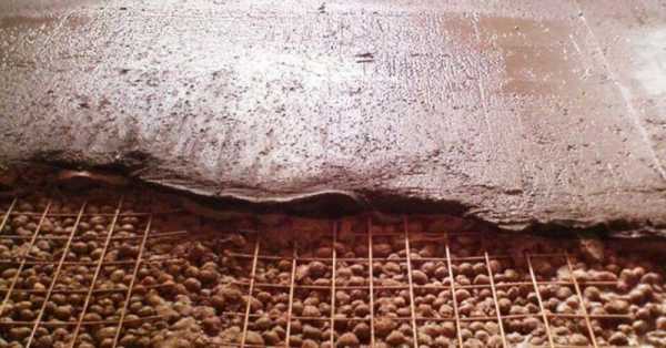 Перед заливкой фундамента цементом керамзит закладывается внутрь опалубки. Таким образом можно утеплить и стены, и пол. Уникальность керамзита заключается в его пористости, которая не дает материалу пропускать влагу и холод, очень хорошо сохраняя тепло. Потери его возникают только из-за цемента, который попадает между гранулами. Именно поэтому керамзит часто используется для утепления пола при неглубоко заложенном фундаменте.