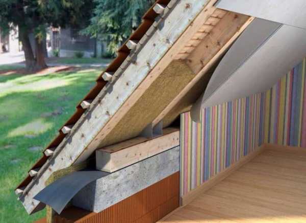 Через кровлю уходит около 20% тепловой энергии. При наличии холодного чердака теплопотери могут быть несколько меньше, так как подобные конструкции создают так называемую тепловую подушку. В таком случае теплоизоляционными плитами утепляют потолок верхнего этажа. Поскольку в кровельных конструкциях чаще всего используется дерево, сталь или алюминий, по противопожарным нормам применение горючих утеплителей возможно только в случае принятия ряда огнезащитных мер.