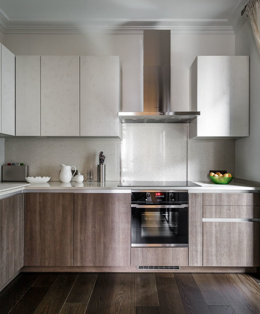 Аккуратный внешний вид. Встраиваемая техника и мебель визуально выглядят единым целым, благодаря чему интерьер смотрится гармонично.
