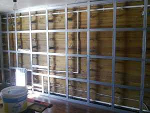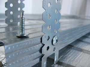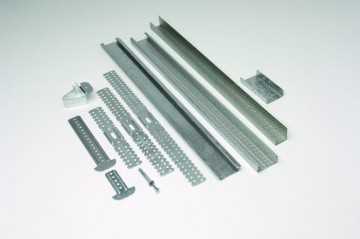 - Потолочный и потолочный направляющий используются аналогичным образом при монтаже обрешетки подвесного потолка. С таким же успехом они могут применяться для выравнивания стен с большими (свыше 50 мм) завалами, изгибами и перепадами.