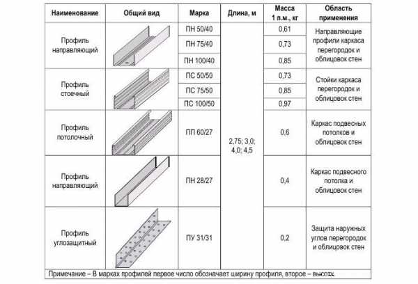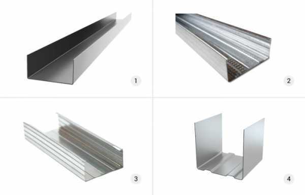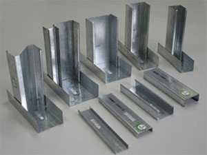 За счёт полой структуры профили из металла имеют малый вес и высокую прочностьТипы профилей для монтажа гипсокартона