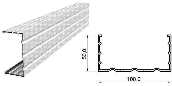 - Направляющий. Эти изделия служат основой для крепления стоечных или потолочных профилей. Детали имеют П-образное сечение. Длина одной секции составляет 300 см или 400 см.