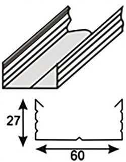 - Потолочный. Эти изделия предназначаются для создания обрешетки, на которую прикручивается отделочный материал. Имея сечение 60×27 мм, они идеально входят в проем направляющего профиля.