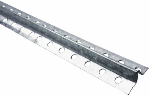 - Угловой. Перфорированный оцинкованный уголок закладывается под шпатлевку для усиления наружных углов стен, дверных и оконных проемов.