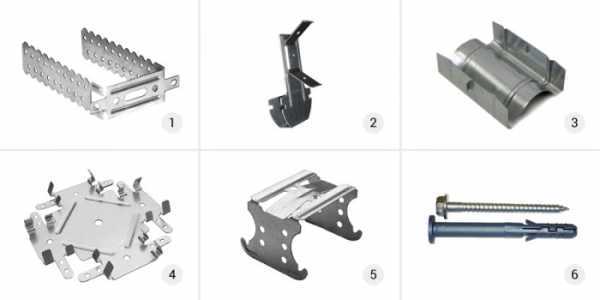 Изготовить каркас из стальных багетов невозможно без комплектующих деталей, служащих для крепления профилей к стене и между собой.