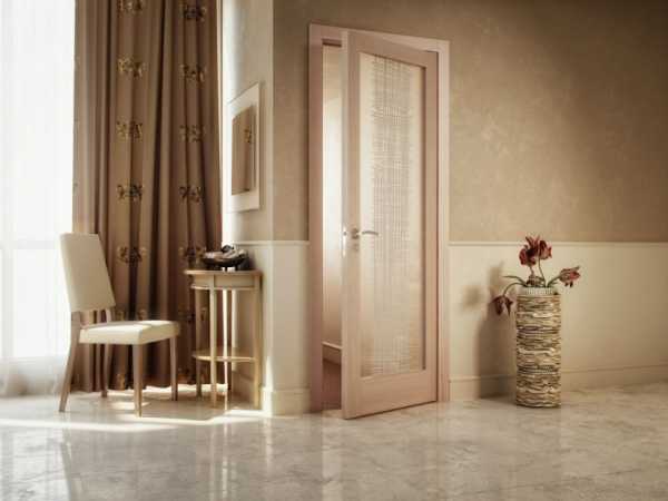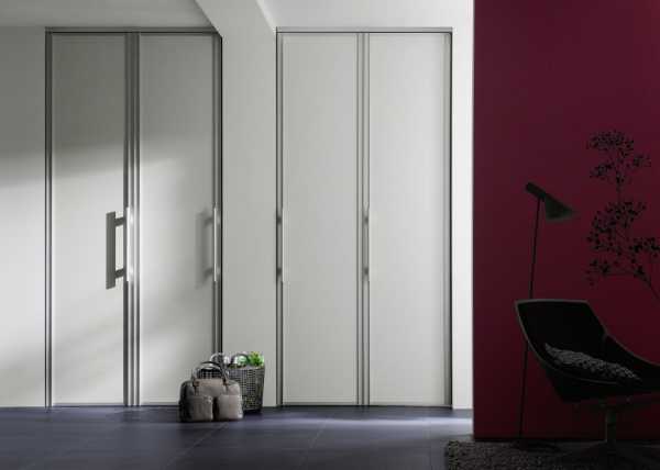 Раздвижные виды будут смотреться стильно, экономить пространство коридора, но для их установки требуется свободная стенка около проема. Другим недостатком таких дверей становится невысокая звукоизоляция и надежность. Открытие, закрытие выполняется парой створок из металлопластика. Их лучше устанавливать, если есть свободное пространство по обеим сторонам проема.