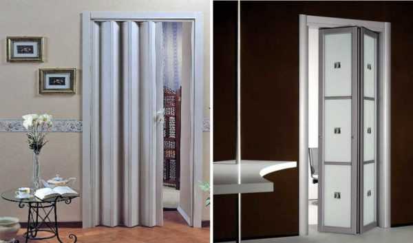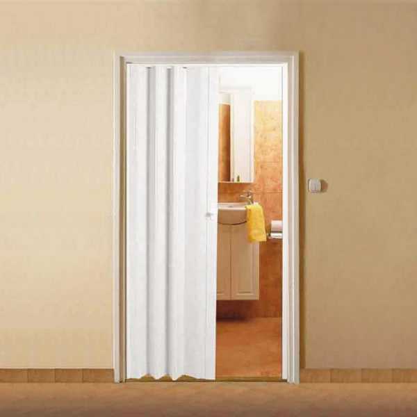 2. Наиболее компактные – складные пластиковые конструкции. За счет того, что она собирается в складки, увеличивается свободное пространство, легко можно регулировать ширину двери.