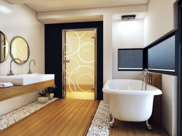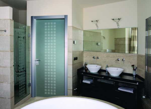 Желательно, чтобы двери для ванной и туалета были выполнены из одного материала и с одинаковым дизайном. Наибольшее же преимущество стеклянной двери – исключительный дизайн и гармония с интерьером квартиры или дома. В том числе, она отлично дополнит интерьер ванной комнаты.