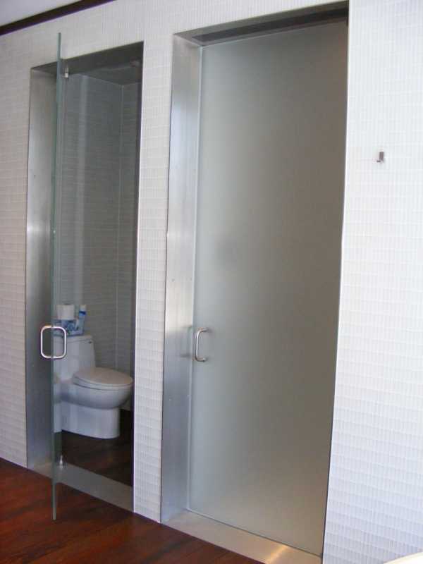 Из-за того, что в ванной комнате и туалете уровень влажности высокий, следует выбирать конструкции из влагостойкого сырья. Дверь должна быть практичной, устойчивой к негативному воздействию влаги. Более подходящими материалами является стекло, пластик, древесина, МДФ и ДСП.
