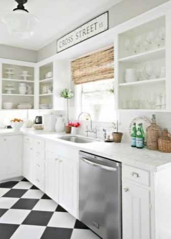 Более того, линолеум такой формы наиболее ремонтопригоден: для замены повреждённого участка достаточно демонтировать несколько фрагментов и установить на их место новые. А так как в кухнях износ напольного покрытия происходит очень неравномерно, то плиточный вариант в данном случае является вполне подходящим вариантом. К недостаткам такого материала относят большое количество швов при монтаже, и, как следствие, вероятность скопления в них жира и пыли. Это требует более частой и тщательной уборки с использованием минимального количества жидкости.