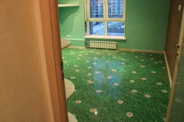 По дизайнерской задумке, пол может быть «собран» из нескольких кусков материала. Такое возможно при составлении определенной абстрактной композиции. Важно при этом выбирать покрытие от одного производителя, из одной партии. Это необходимо для того, чтобы все фактура и все цветовые гаммы совпали между собой.