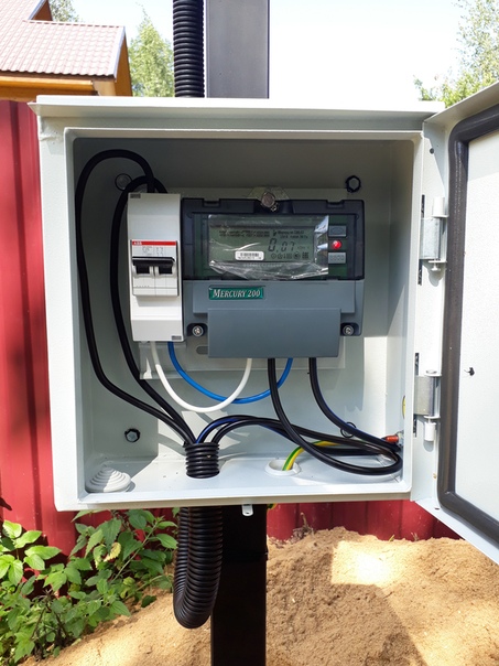 Для установки выбираем место в коридоре или прихожей дома. Чаще всего подвод кабеля от столба электролинии выполняется через промежуточную опору во дворе дома. Ваш задача — выполнить установку шкафа, вывести кабель в гофре на опору, подключение кабеля к линии возлагается на специалистов энергосетевой компании.