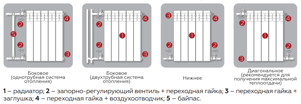 Технология подключения стандартная – боковая, поэтому монтаж довольно простой. Разрешается устанавливать радиаторы данного типа в жилых, производственных, офисных, торговых помещениях.