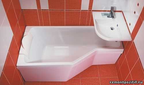 Основное преимущество изделия — разнообразие форм и компактность. У асимметричной ванны могут быть специальные выемки для рук и место для шампуня. Единственное, что не всем позволяет выбрать такую ванну – высокая цена.