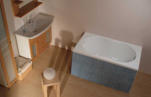 - Можно заменить старую ванну на такую же модель, только меньших размеров. Например, 120 см. Дело в том, что стандартная длина 150 – 170 все равно не дает возможности лежать, вытянувшись во весь рост. Так что в принципе некоторое уменьшение габаритов изделия существенных неудобств не создаст.