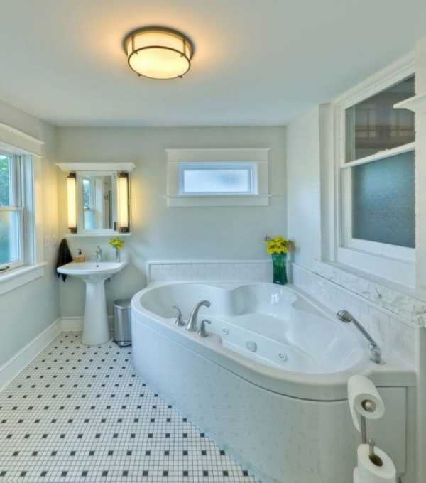 - Чтобы усилить освещение в помещении, не имеющим окон, и сэкономить электроэнергию, рекомендовано поверхности потолка и стен в ванной комнате сделать белыми или очень светлыми.