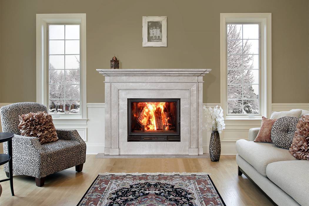 На фото: камины каменные и деревянные в классическом стиле (Очаги Cassette 1000 и Cassette 600)
