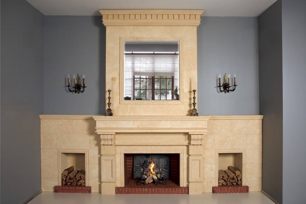 Отделка камина деревомЕще одной особенностью камина в классическом стиле является наличие полок и ниш для размещения различных предметов декорирования: