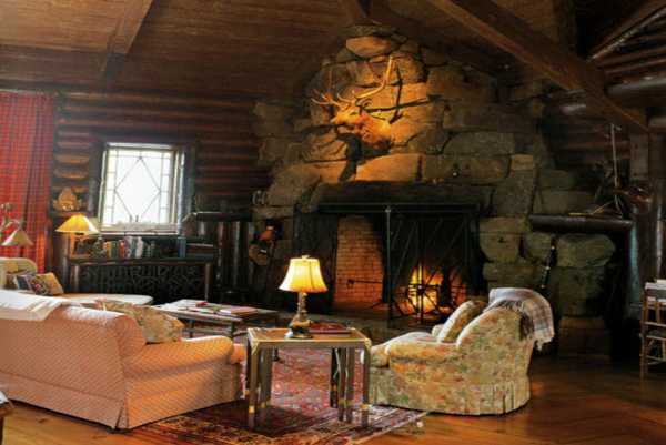 Если устанавливается камин в частном доме, дизайн избы как раз будет удачным. Дополнить можно плетеными креслами, массивными дубовыми столиками, тумбами. Многих пугает использование декоративных элементов на камине из дерева. Не стоит бояться. В настоящее время используются материалы обработанными специальными противопожарными эмалями.