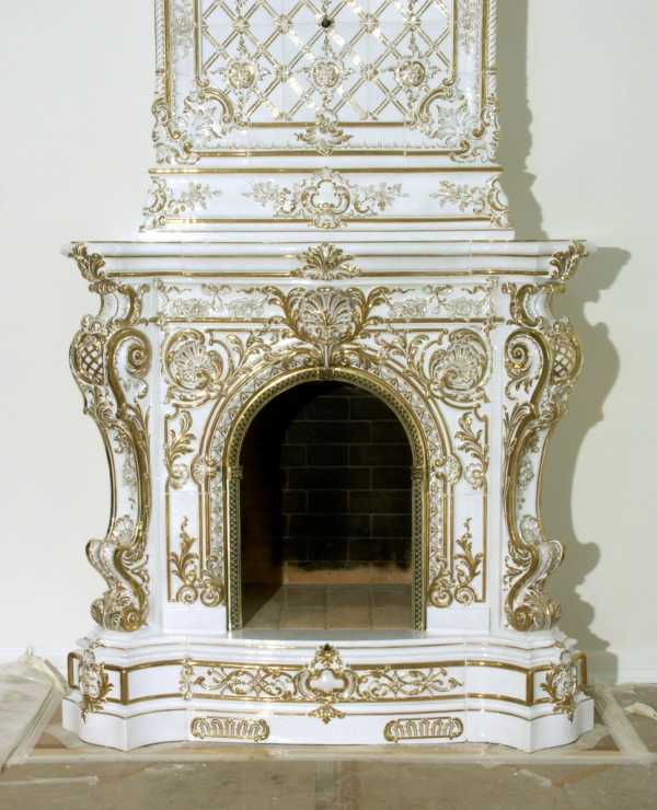 Если сделана в классическом стиле каминная комната, дизайн отопительного устройства должен быть выдержанный. В оформлении могут быть использованы рельефные элементы. Часто применяют роспись. Все детали, линии должны быть хрупкими, нежными. Дополнением к оформлению могут быть могут быть небольшие фарфоровые статуэтки.